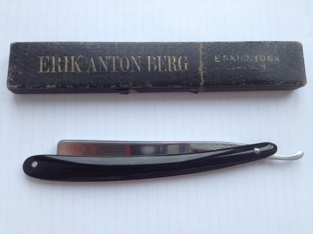 уралец: Что за производитель Erik Anton Berg? Предложили старую бритву от него,ручка ,похоже, неродная ,но само лезвие в очень хорошем состоянии, без всяких следов ржавчины, но и следов предпродажной подготовки нет, лезвие темное. На лезвии ряд (Штук восемь) золотых медалей и четкое клеймо рыбы,видимо акулы. Ширина лезвия ,скорее всего, 6(8 дюйма Может кто подсказать. что это зв бритвы, то в поиске не нашел?
