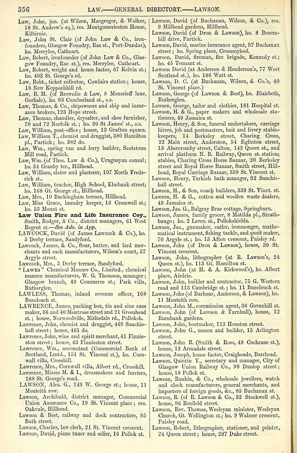 информация из директорий Глазго за 1873-1874 гг, 1884-1885 гг, 1899-1900 гг.