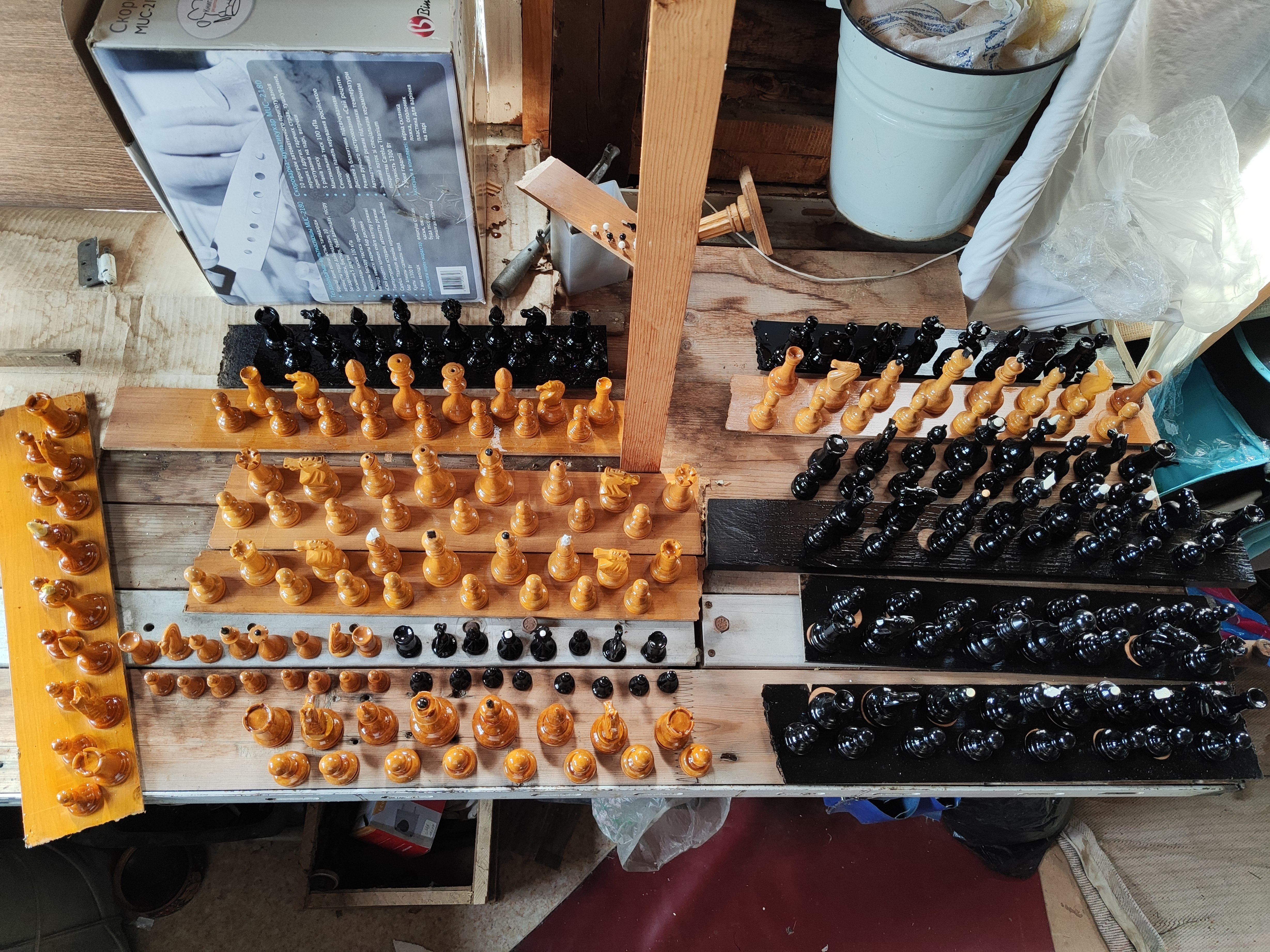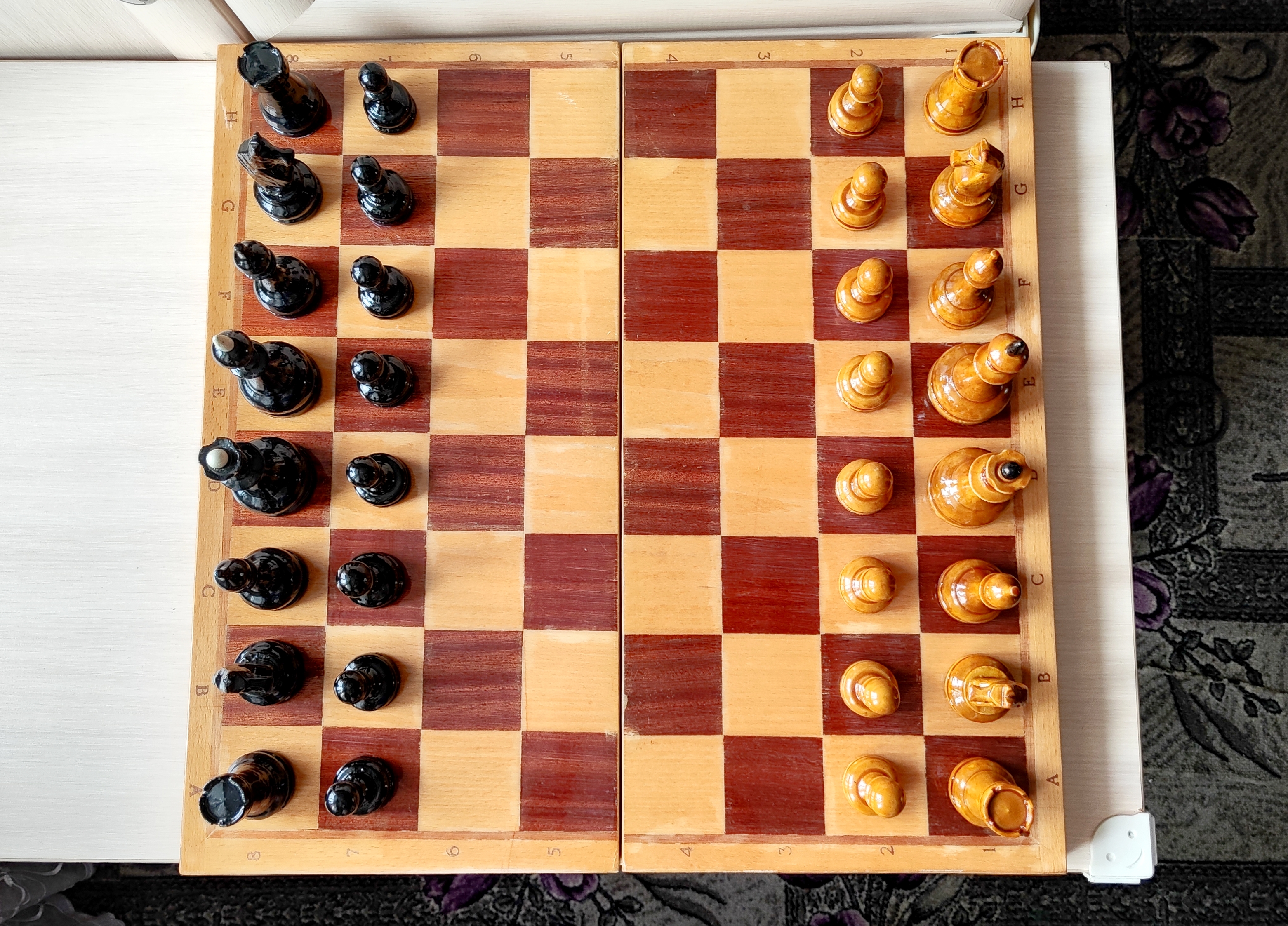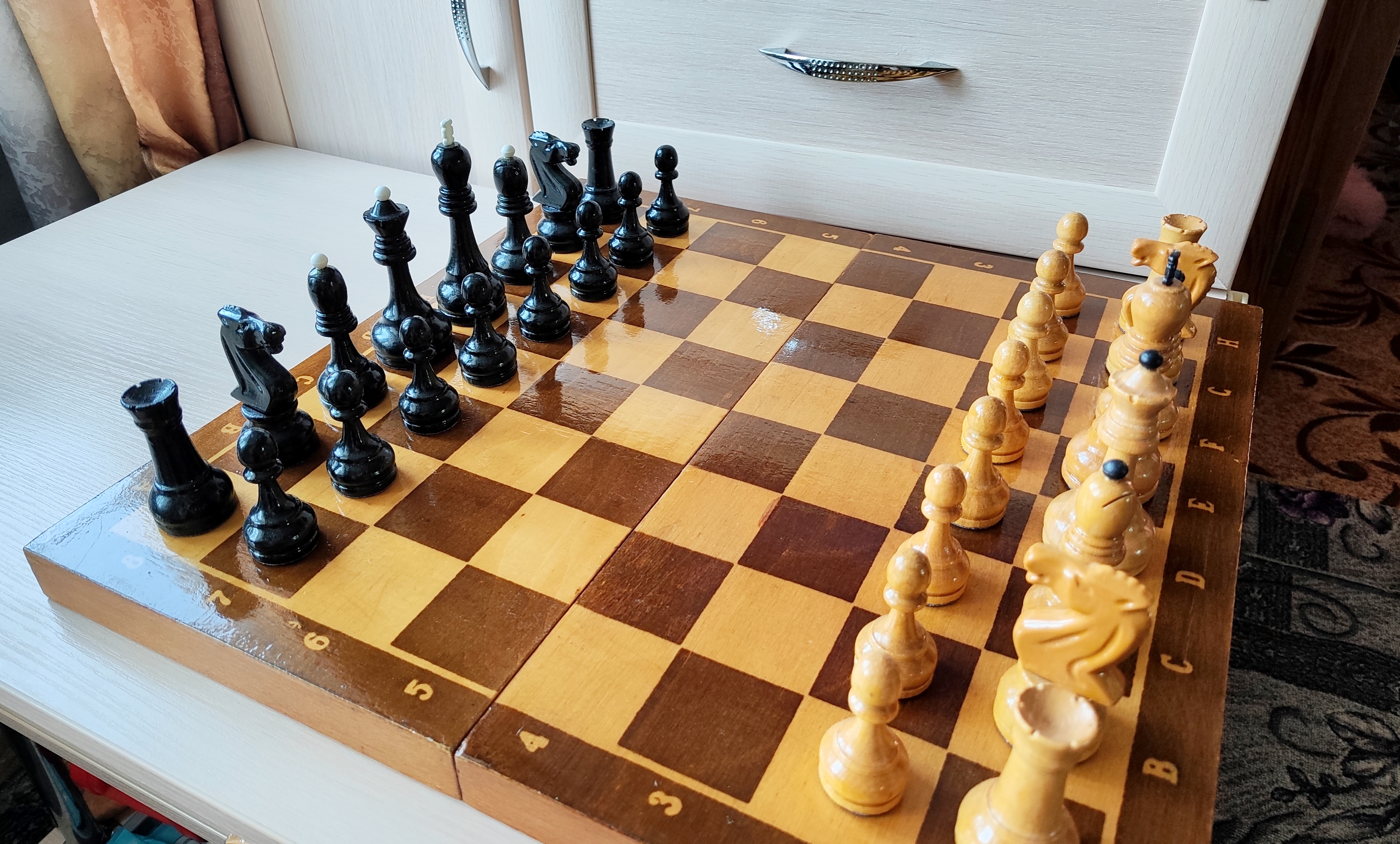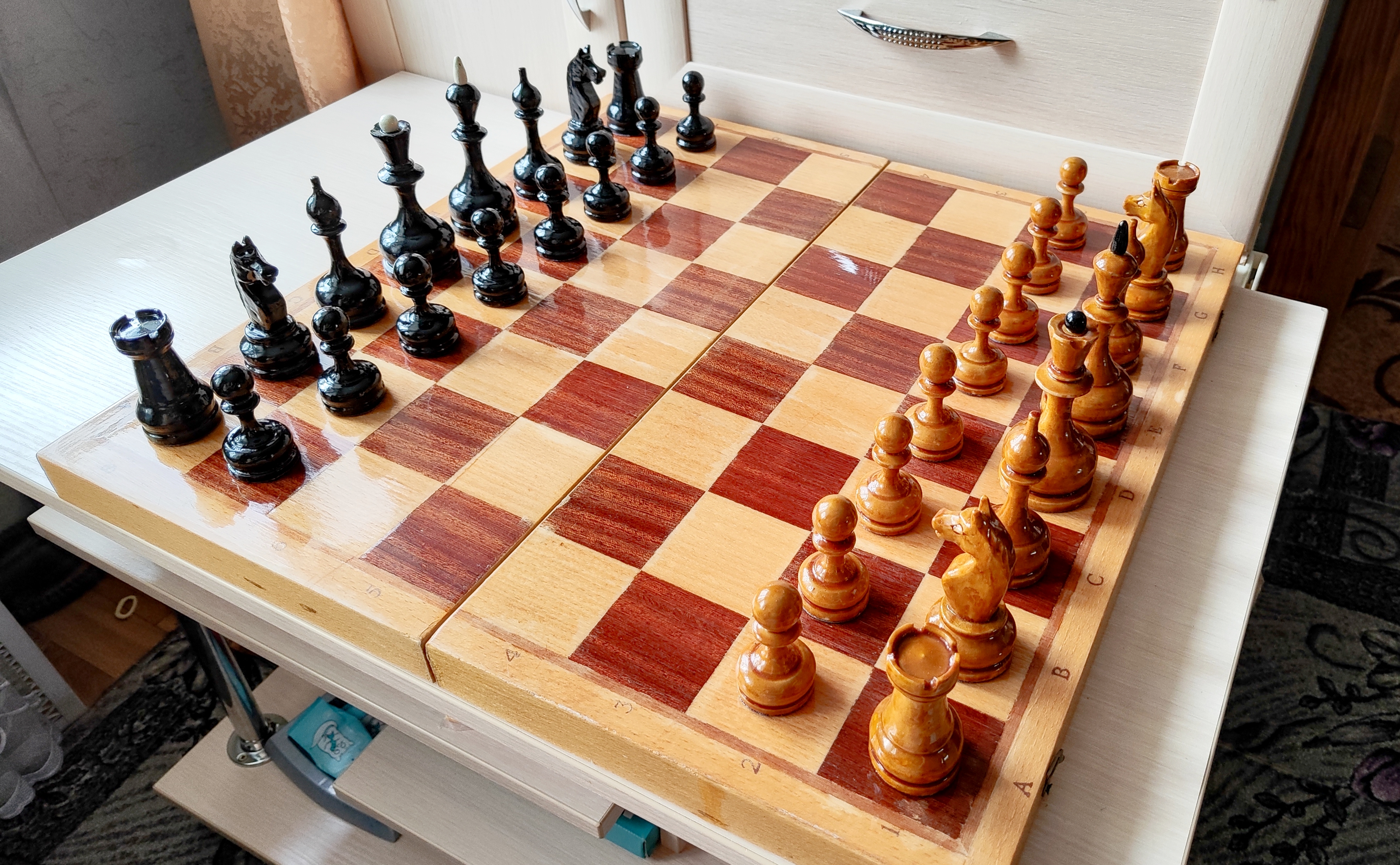 Наше прочее хоббиВ игре сейчас такой комплект: гроссмейстерские утяжеленные конца 70х, из работ только поменял подложки на мебельный кожзам и покрыл доску. Остальное родное. Доска 45х45 см