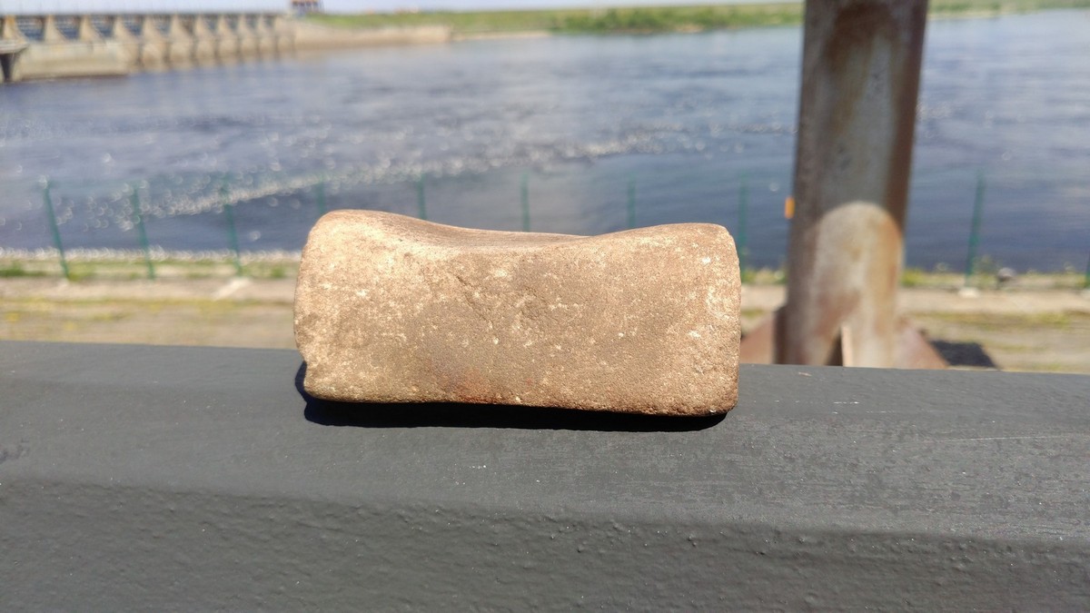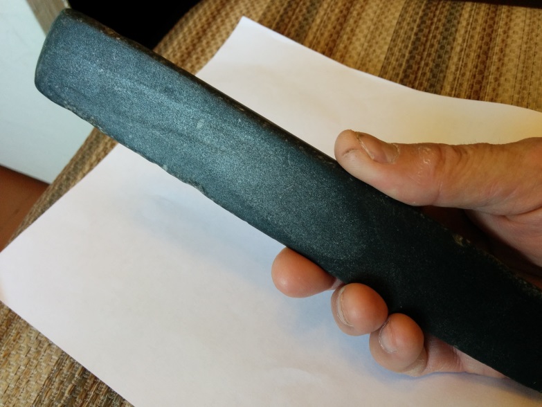 При разборке завалов в деревне нашел булыжник, об который, вроде бы, кто-то что-то активно точил. Немного потер найденный булыжник об абразив, увидел что находка имеет бело-серый цвет с множественными вкраплениями оранжевых точек. Структура камня мелкозернистая, при попытке поточить китайский нож увидел риски, похожие на риски от камней в 100 гр. При заточке поверхность камня очень быстро стала грязно-серой, металл с китайца был хорошо заметно погрызен. Может быть, кто-нибудь опознает, что это я такое нашел? Стоит ли заниматься приведением в цивильный вид? Или, может, это хороший гнет на огурчики? Re: Помогите определить каменьЭто брат близнец моего
