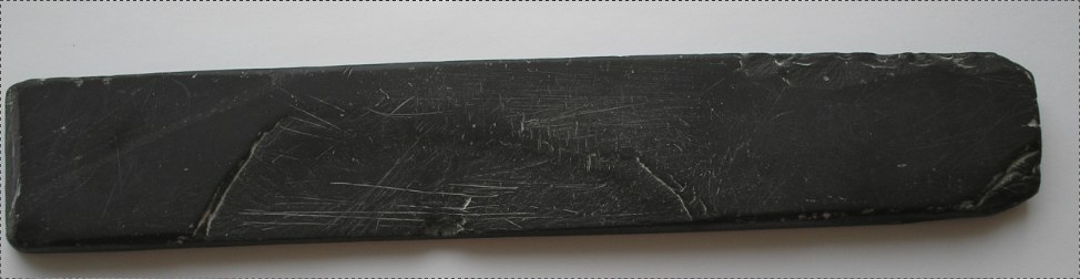 Я когда то ходил на столярный кружок, там был похожий камень, и правда, как по резине ощущения, хотя он очень твердый. Был без всяких надписей и прочего, доводили им резцы ручные токарного станка по дереву.