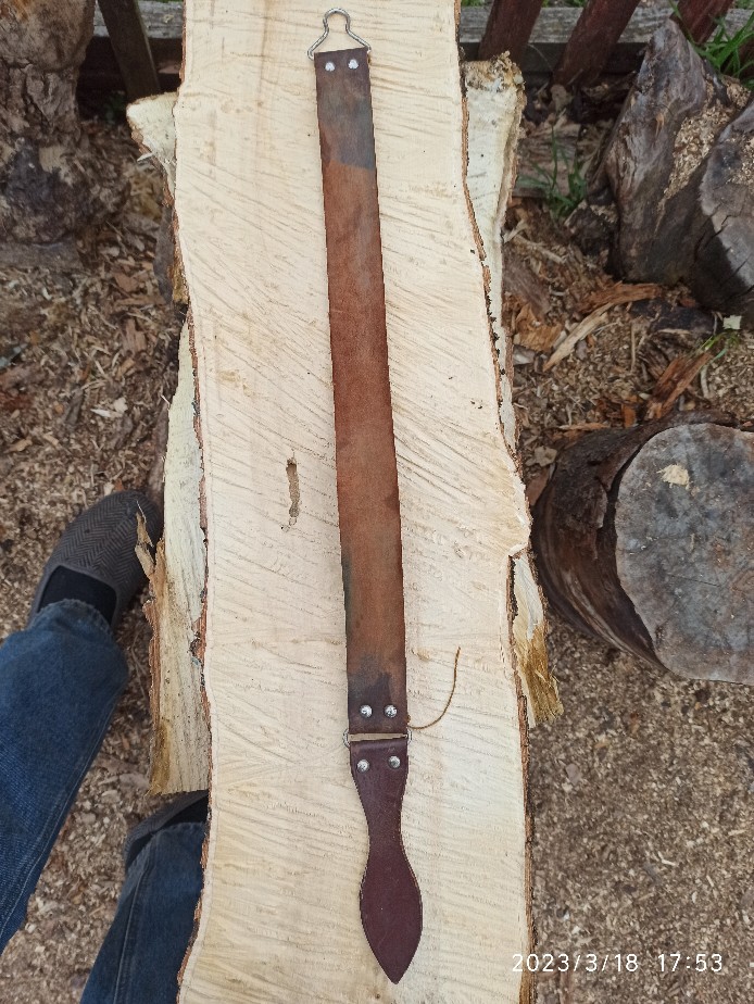 Я же написал, при сильном натяжении ремня рукой – он выравнивается. Обе стропы становятся одинаковыми. В советских ремнях для правки обе стропы (кожаная и льняная) были равными (по длине)?