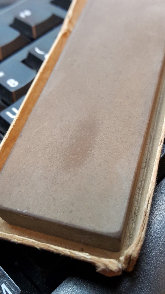 Пока я на нем слегка притупил острый нос на приехавшей бритве, получилось быстро и хорошо (на узкой торцевой поверхности бруска это сделал, чтобы не попортить лицевую).