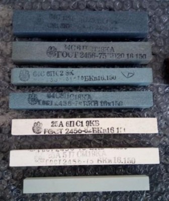Арканзас советы покупали у Америки! и пилили здесь Бруски для бритв даже не 1 процент прозводства!. Я думаю 0,01 процент. Все остальное это промышленность. В инструментальной промышленности оно использовалось. Слесарями, слесарями лекальщиками, токарями, фрезировщиками. Заусенцы снимать, квадратные отверстия обрабатывать и еще миллион применений. Полный ассортимент абразивов в таком мелком формате я думаю десятки тысяч наименований. У камней есть надписи. Типа абразива (вариантов 5) тип связки (типа 3) твердость связки (типов 9) пористость, пропитка и т.д. Плюс размеры - абсолютно всевозможные. Квадарты, ромбы, овалы, круг, размеры чуть ли ни через миллиметр. И во все параметры перемнож в вариациях и буду каталоги на сотни страниц Вот за 3 секунды в сети нашел. Ваш размерчик с пдписями? Все разные и наверное все для бритв