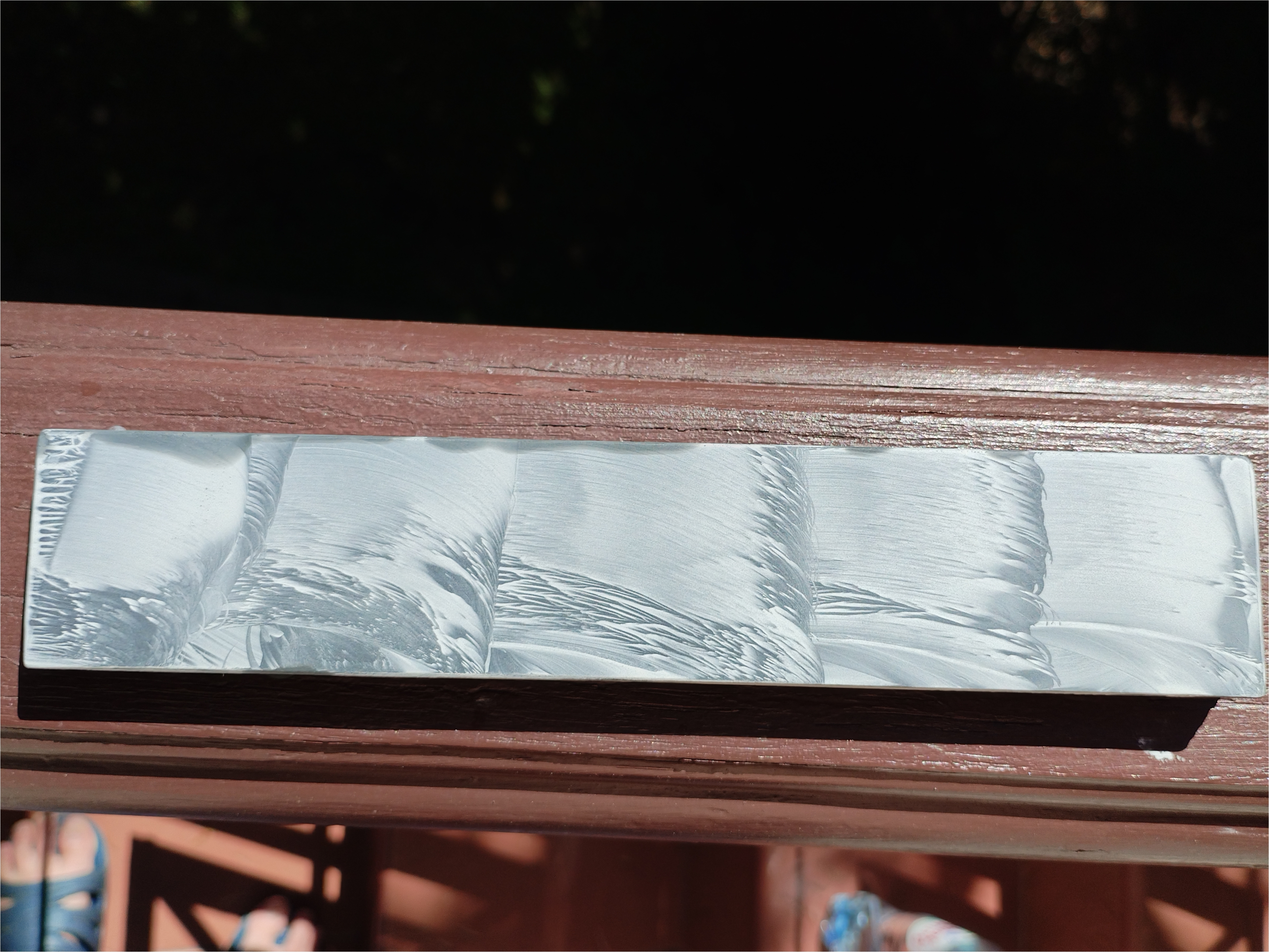 Прошу вашей помощи в атрибутировании камня, который недавно мне посчасливилось заполучить. Цвет матовый черный, суспензия выделяется охотно и имеет белесый цвет. На ощупь гладкий, бархатистый. Насколько я понял, это какой-то сланец, но вот какой? С торцов и боковой стороны видны характерные следы распила. Размеры: 182х33х14 мм. Камень был поцарапан, поэтому пришлось выровнять и притереть его с одной стороны 800, с другой 1000. Ваше мнение, что это может быть за сланец?