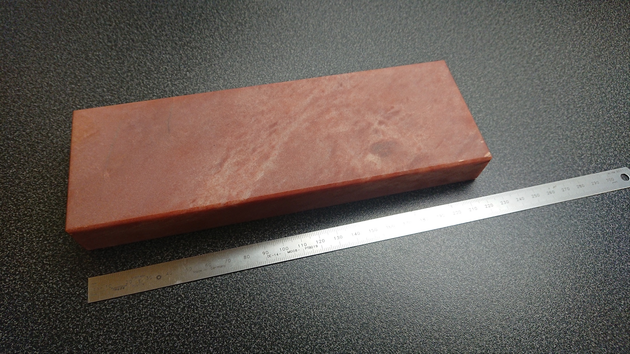 Решил вернуться к теме по небольшой добыче и отбору белорецкого кварцита. Получилось вырезать десяток штук новых пробных брусков, некоторые из них на фото: Красные камни, поднятые с северного месторождения, белый - с южного соответственно. По ощущениям при выравнивании - красные камни тверже, чем арканзасский камень вида Translucent, скорее ближе к Black. Несмотря на переливы цвета, структура камня в работе показывает себя очень однородной. Размеры - 200 х 75 х 25 мм, и 220 х 75 х 25 мм.