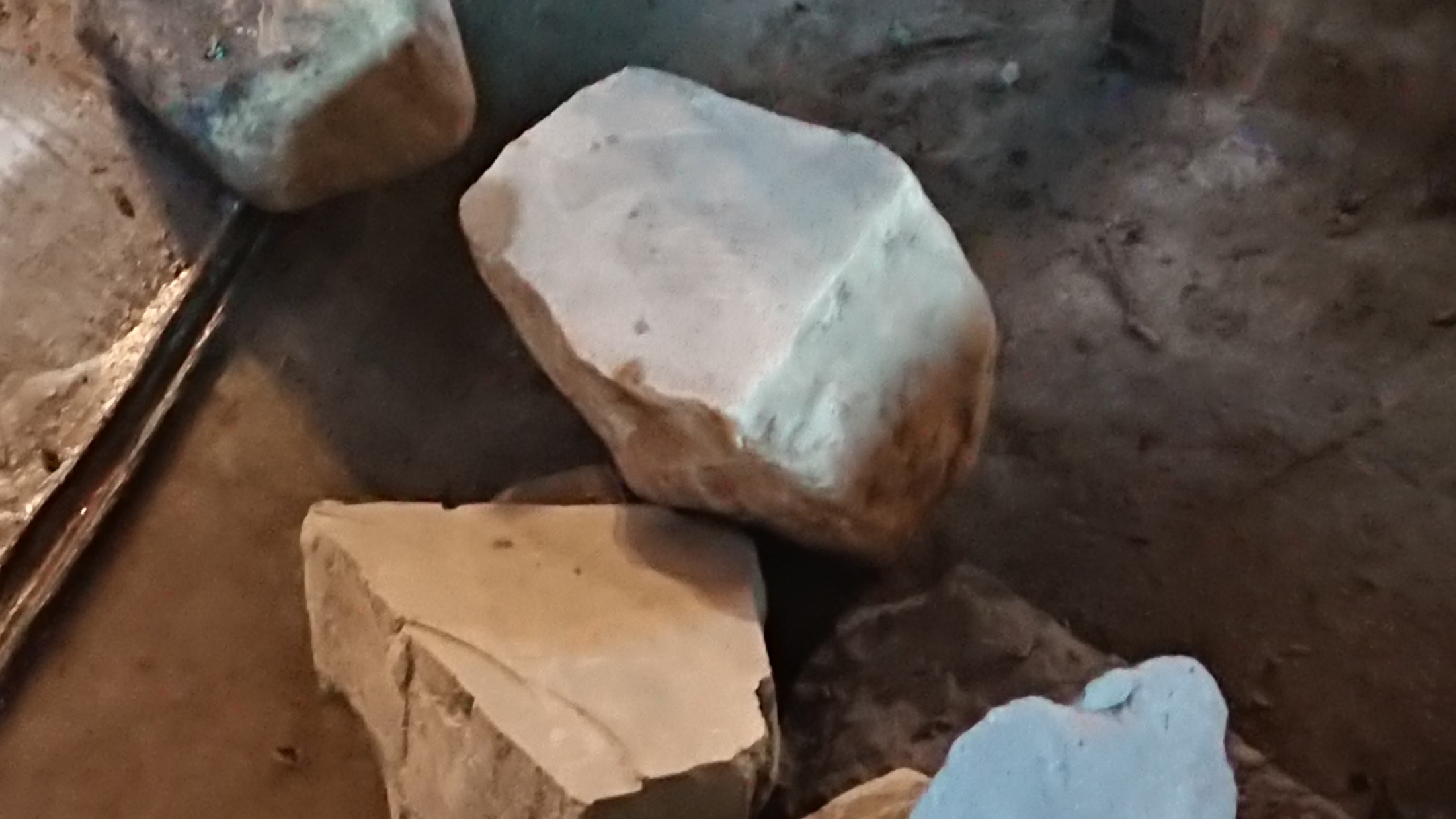 В южном карьере взято еще несколько больших кусков породы, разных цветов и плотности. Пару белых камней "траслюсент" найдены в ручье, они попали туда с движением льда.