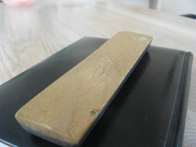 Это хороший доводочный камень(я не знаю какой),притом все правильно, масляный.Я у Wolframa видел похожий,немного не такой как на фото,но что то подобное.Хорош камень - однозначно. =@