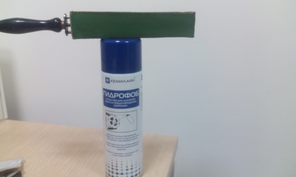 Сегодня дошли руки до изготовления пастированного ремня. Накопал из советских запасов светлую ГОИ, на вторую сторону нанес 3М финишную, она тоньше ГОИ. ГОИ пересохла, поэтому поместил ее в баночку из -под ДП, добавил немного вазелинки, смешанной с мятным маслом, нагрел феном, растопил и перемешал. ГОИ стала сметанообразной. Нанес на ремень. разравнивал круглым стеклянным пузырьком. Ремень несильно прогревал феном и разравнивал пасту. Поверхнсть по началу была сырой, но уже утром от масляной сырости не было и следа. Поверхность стала деревянной. Несколько раз брызгал на нее средством Гидрофоб (сертифицировано для применения в пищевой промышленности), предположительно в состав входит керосин, растительные масла. Запах не противозный. Пользуюсь им для консервации бритв. Паста 3М финишная на воде, после нанесения на ремень требует небольшого замасливания поверхности, т.к иначе отваливается кусочками.