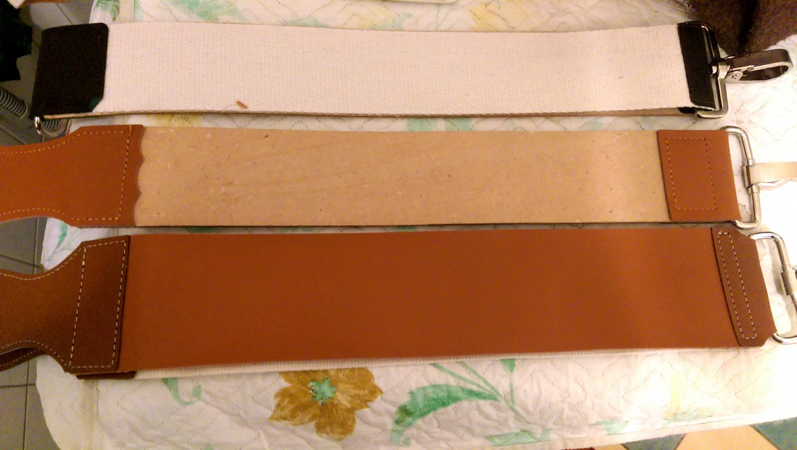 Сразу обозначить что были получены не очень осведомленным другом, желание сделать приятное любителю бритья опасной бритвой. Спрашиваю Вашего мнения. Выбросить в утиль не поднимается рука, Хочу дать шанс этим экземплярах проявить себя. Прошу понять и простить, если осквернил форум как цитадель поборников каконического бритья, но думал следующим образом, раз порой и советские армейские ремни допускаются до стали наших любимых бритвой, то новые пусть и китайские ремни могут найти применение в нашем ритуала. Хочу спросить, насколько можно спросить показывая фотографии, какие ремни оставить чистыми, а на какие употребить под пасты.