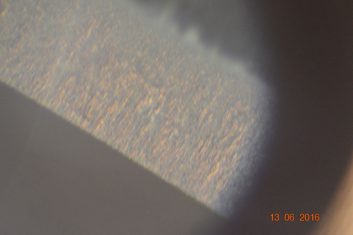 Re: Японские натуральные водные камни, и их свойстваНужен опыт и немного интуиции. Конечно кота в мешке брать нельзя. Вот 2 фото бритвы до финиша, пришлось убирать микрозамин, риски остались после работы на супертонком арканзасе, то есть в принципе с какой то точки зрения работа японца должна быть решающей. Снимки сделаны со светом в лоб и сбоку. Финиш сделал на самом не дорогом финишнике. Новое видео по заточке в теме моих продаж.