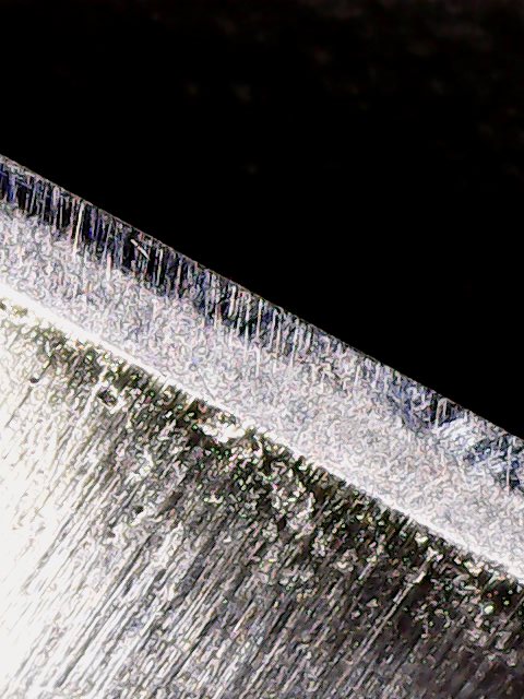 Re: Заточка на камняхНет, бритвы не от Седых. От форумчан. Бритвы разные. Одна точно финиш на эшере. Вторая бритва, мои предположения, изначально была заточена на японце, а потом наклеили изоленту и прошлись на эшере. Обе бритвы бреют шикарно. Я почему попросил фото кромки от эшера у Sandr, хотелось увидеть как она выглядит в его микроскопе ? Фото были сделаны на разные usb микроскопы, первый китайский noname второй я думаю тоже китай, но с более лучшей матрицей под названием " Микмед 2000 R"