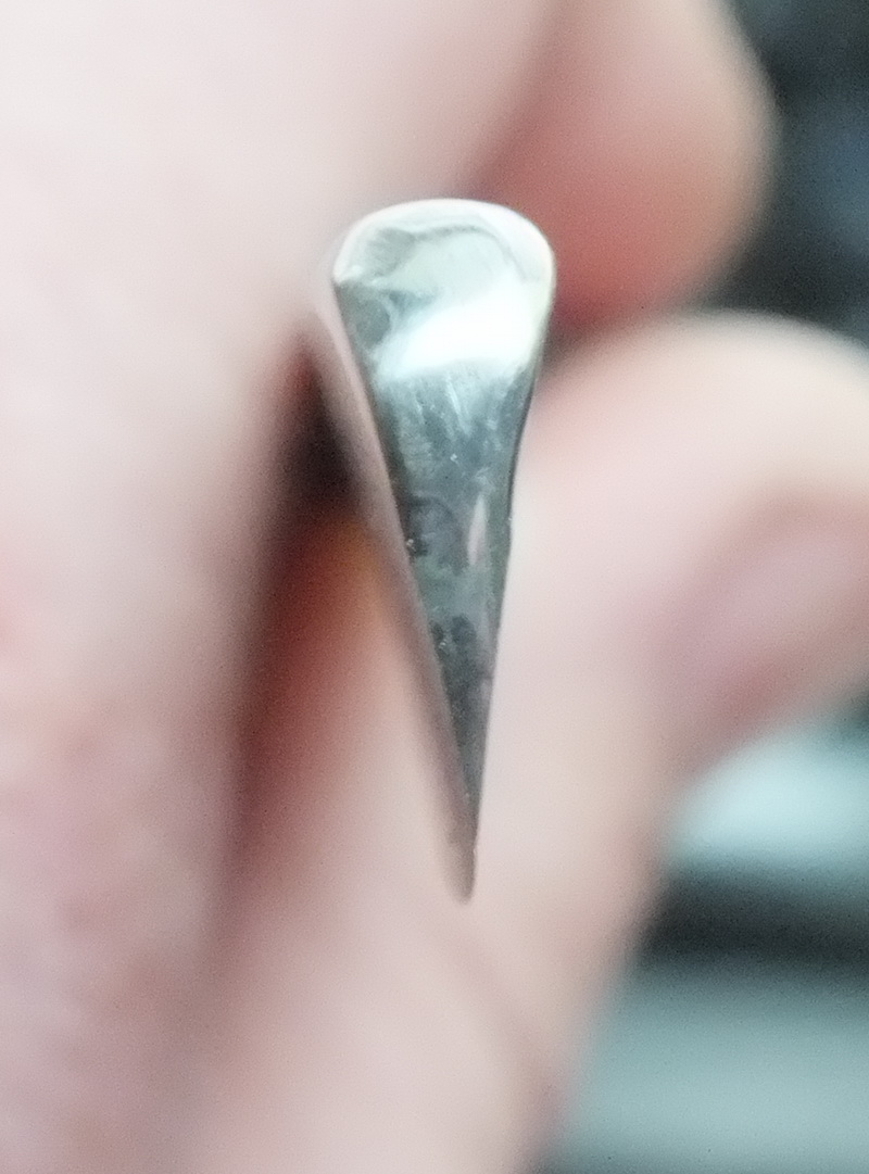 Вывел клин в ноль. Поскольку бритва немного изогнута влево, получилось неэстетично. Весьма.