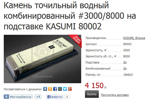 Naniwa IN-2090 210x70x10 S10000 With Stand Этот: http://knife.kasumi.ru/katalog/vodnye_kamni/33846/" onclick="window.open(this.href);return false; и вот этот: http://knife.kasumi.ru/katalog/vodnye_kamni/04885/" onclick="window.open(this.href);return false; Работают прекрасно,не забиваются, сталь рисует свои рисунки, видно где есть съём метала а где нет, нареканий нет, кроме одного, 1000-ный почти стерся. Все остальные камни-вечные, если их не ронять и не давать в другие руки. Re: Выбор камня или снова новичок (реальные отзывы)Да, японские искусственные водники считаю апогеем заточки. Ничего больше не надо. Остальное-баловство.