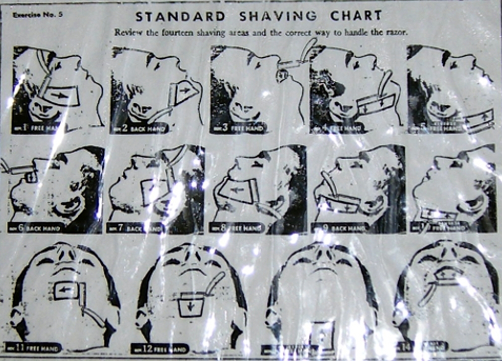 Draw your lower lip up as much as possible. This will pull the skin tight, making it easier to shave the whiskers underneath your lip and on your chin. Shaving Under the Chin Throw your head back and elevate the chin. With your left fingers , draw skin downward. Take extra care as you shave. The skin under the neck is much more sensitive and prone to cutting. Important Note: Always wear a sweet vest (towel around the neckline) when shaving with a straight razor. Should I do multiple passes? If you want that smooth as a baby's behind look, you'll have to do multiple passes with the razor going across and against the grain. For the beginner, I recommend just going over your face again with a downward stroke.