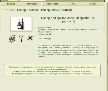 Есть много персонажей, которые не приемлют б/у товары в принципе. Что вещи, что автомобили, что книги, что бритвы. Тут два основных момента - либо гипертрофированная брезгливость, либо желание, выбравшись из времен ограниченности в деньгах, иметь все нулевое, девственное, чтоб муха не еб..сидела. Каждому свое. Re: Краткий список поделок, не являющихся опасными бритвамиDrifter, я понимаю, о чем вы) Таким людям опасная бритва не нужна в принципе, так что все по-честному.