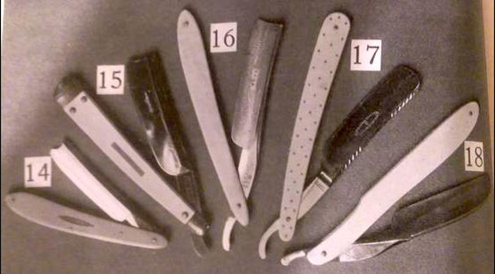 - 19. Дата 1845. Даты четырех американских бритв, 19, 20, 21 и 22, не могут быть определены с большой точностью, поскольку американские бритвы не всегда соответствовали шеффилдской моде соответствующего периода.