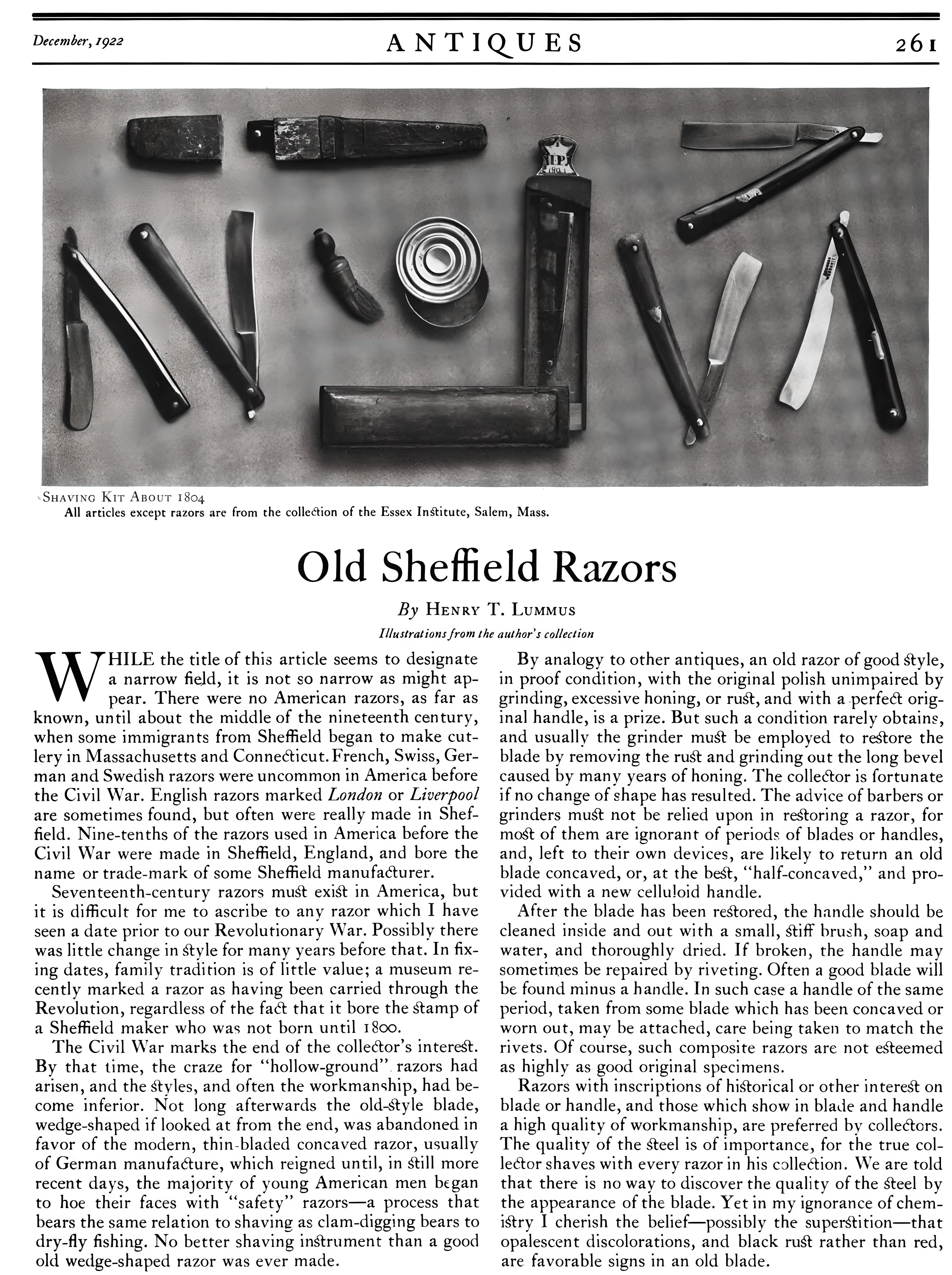 Для полного комплекта добавим и скан статьи "OLD SHEFFIELD RAZORS" by Henry T. Lummus в высоком разрешении: