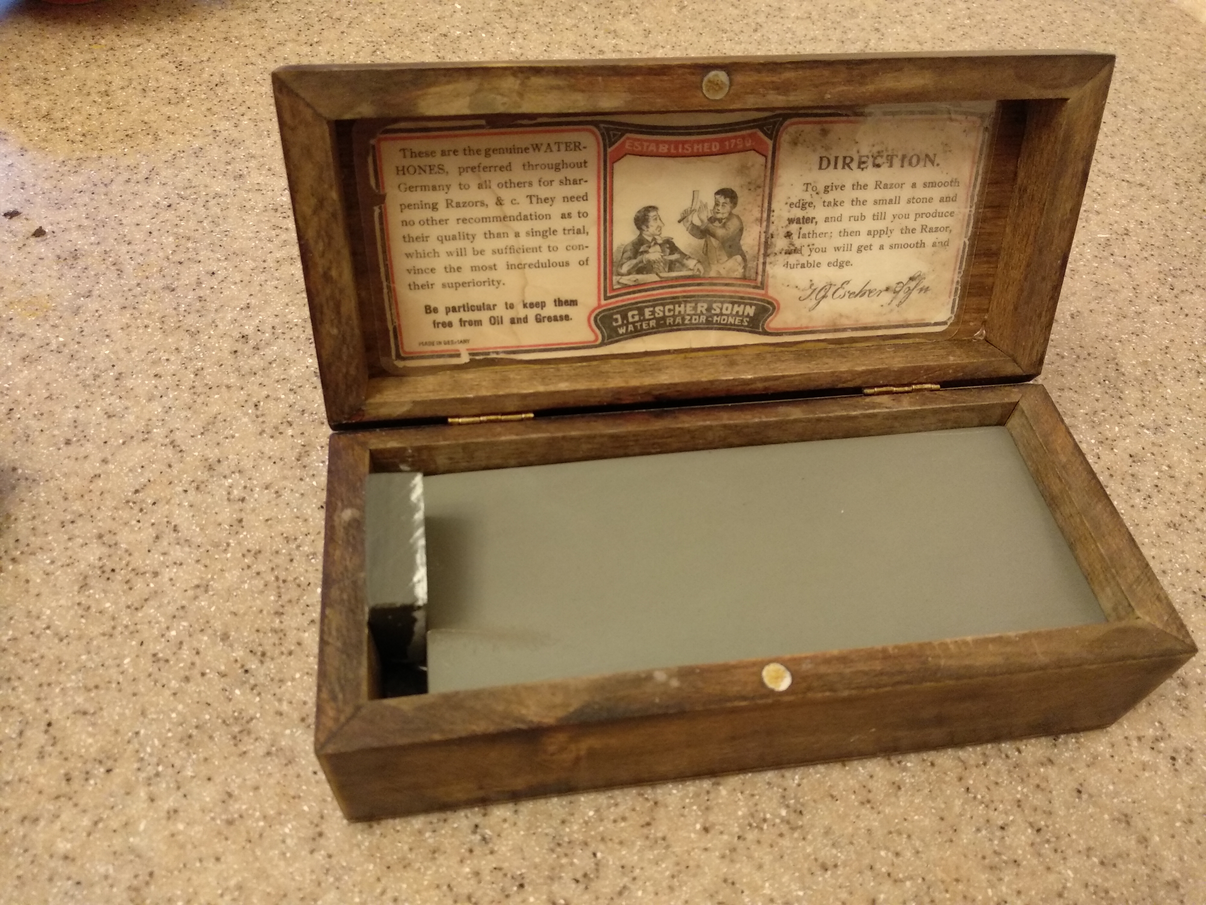 J.G. Escher companyВот мой Эшер (другой) вообще его не пользовал еще. Коробку и этикетку тоже можно отнести к раннему периоду. На вид тоже должен давать синеватый цвет, но просто серый по моему. Интересно что у него как у Япната есть "хада" или как ее там, короче обратная сторона не обработана и как с карьера, мне такие не часто попадались.