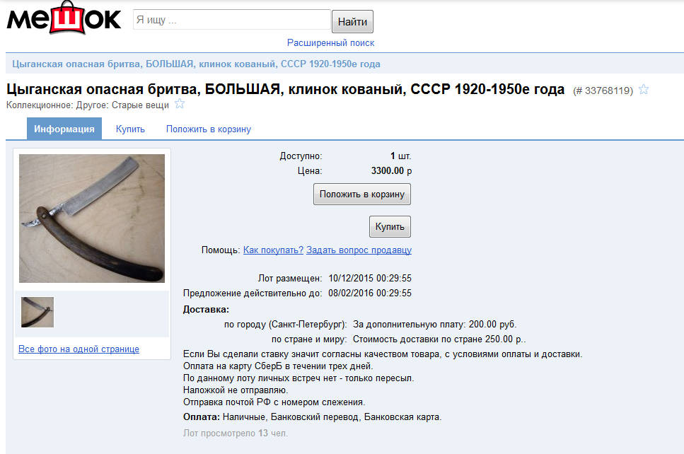 Re: Аукционы: плагиат, развод и "великолепные" описанияЦыганская опасная бритва-может она мокрушная?)