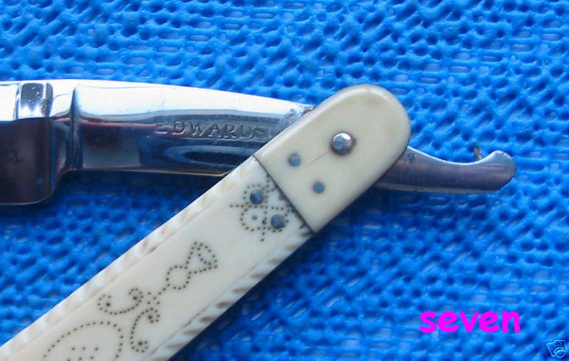 Древняя антикварная бритва (лет 200). Накладки кость с всечкой серебряной проволки.