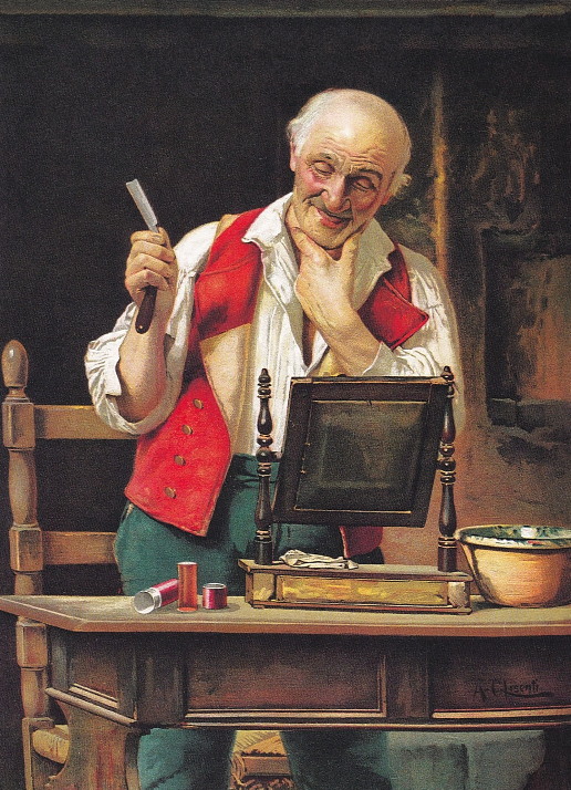 „Мужчина викторианской эпохи бреется опасной бритвой”, 1893 г.