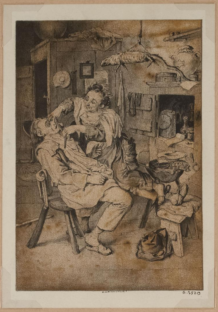 Штамп — На лицевой стороне листа, внизу, по центру под изображением, черной тушью: «CARNAVALET» (см. Lugt Suppl. 432d).