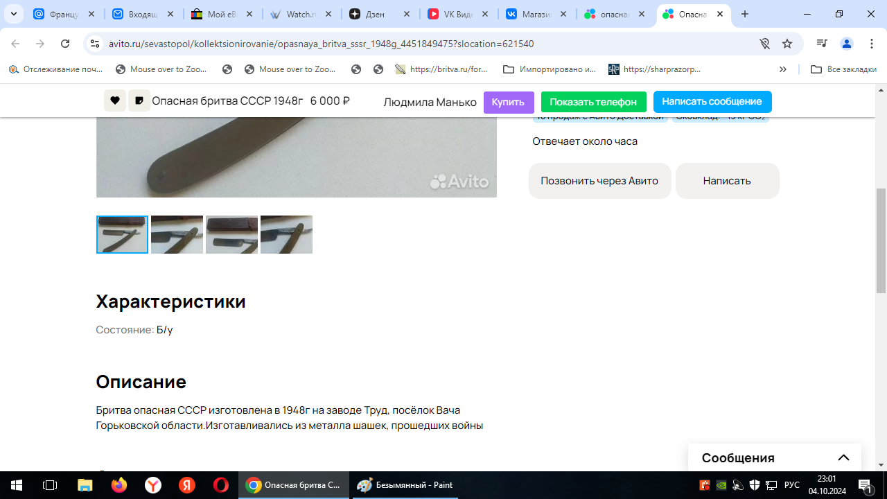 Аукционы: плагиат, развод и "великолепные" описанияРемонт опасных бритв, звонить с 11-00 до 23-00, +79267729357, (whats app, telegram, VK), спросить Олега.