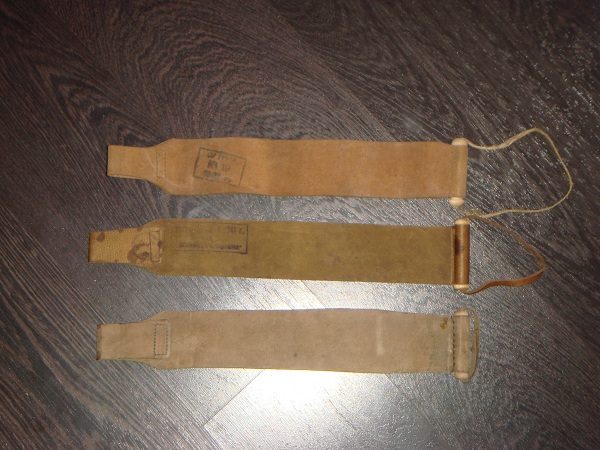 1941 год. Из разбронировок. подсмотрел на ганзе. первый ремень лежит лицевой стороной, остальные оборотной. никакой фурнитуры!! и ручки нет - палец просунул, натянул. Spoiler Show