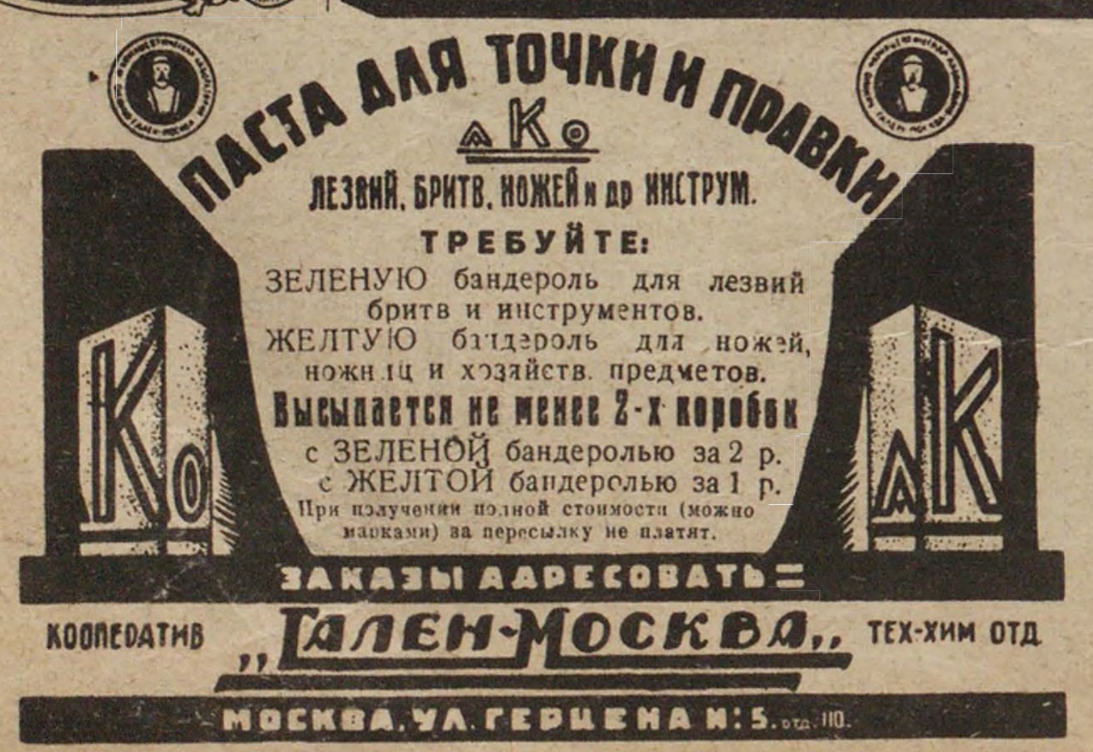 . Spoiler Show Ни к селу, ни к городу,но о бритвах(производители без бритв)Кооператив Гален - Москва 1927 год