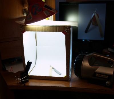 Re: Как ДОСТОЙНО сфотографировать опасную бритву?..Пока этот дневной свет был - на окне и делал, но сейчас дневного света явно недостаточно.
