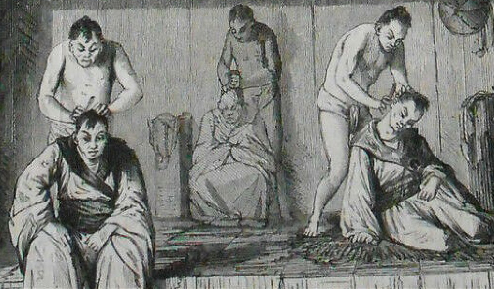„Le barbier, a Jeddo” „Цирюльник периода Эдо”, 1862 г. Два цирюльника: С 2013 г. с кайфом бреюсь опасной бритвой пять раз в неделю, в три прохода.
