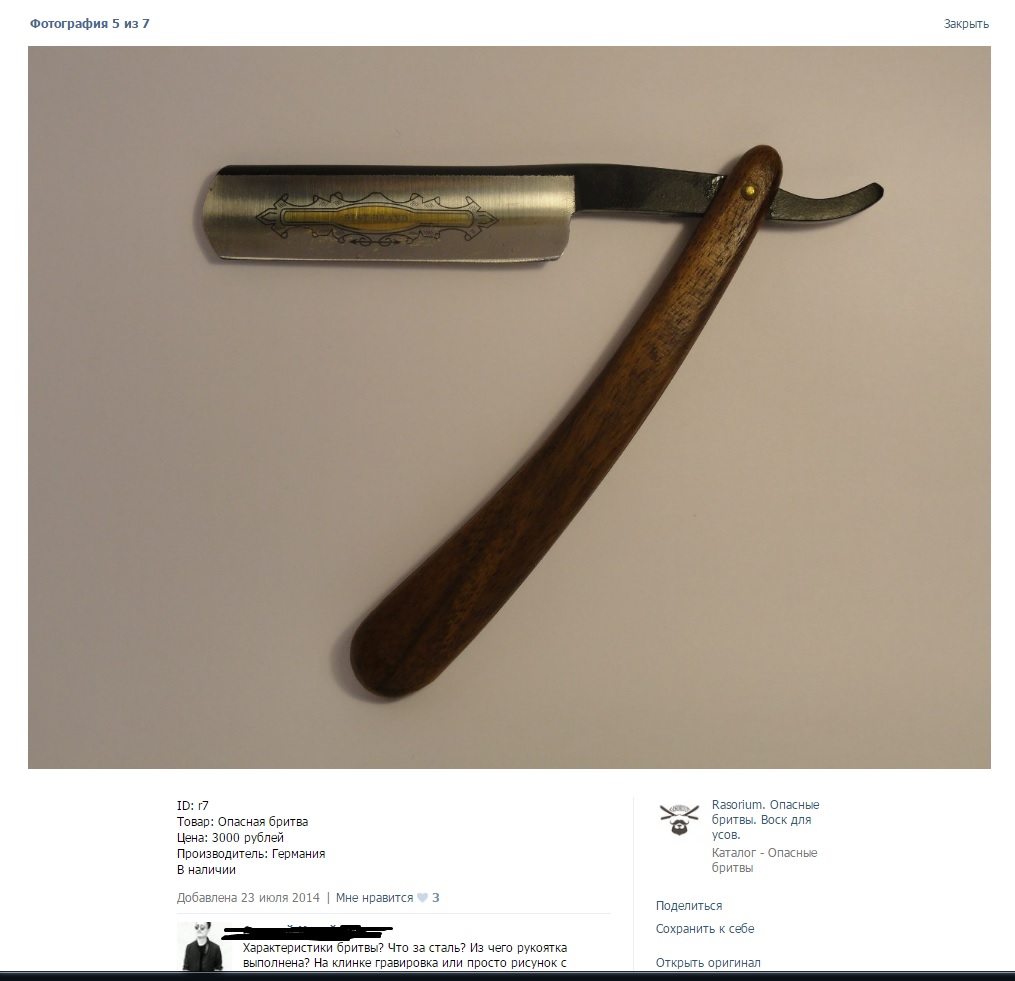 Spoiler Show https://vk.com/rasorium" onclick="window.open(this.href);return false; Харю не мусолю, чай борода - согревае в холода. Не точу - руки не оттудова. Барышничать не изволим-с.