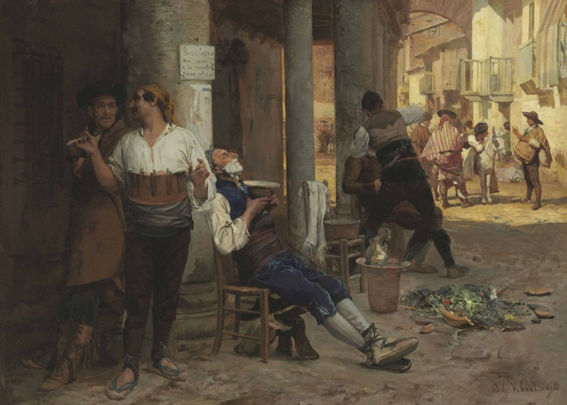 Профессия брадобреяКартина Жан Жорж Вибера (1840 -1902) „Barbier Ambulant Espagne” 1868 г. „Путеществующий цирюльник в Испании” ценна для меня не только потому, что она была написана знаменитым художником, но и потому что несет новую информацию.