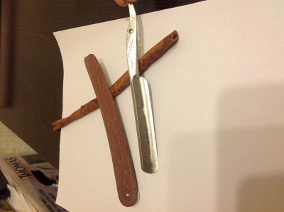 Добавлено спустя 44 минуты 34 секунды: Подарю, желательно двум разным членам Первого и единственного форума о бритве и бритье в Мире!!! 1). Бритва Том Тернер (Купил б\у, ручку родную съели мыши (хоть пластик был - видно мыши Челябинские "крепкие" попались (( могу прибавить как бонус))). Шкурил, дер, и тд. по всей процедуре. Клал в шкаф ( вообщем уронил неудачно.До этого тоже ронял бритвы. Так получилось. Не путать с болезнью Паркинсона), образовался скол на итак потертом временем полотне. Ручку "почти Сделал" с отличного дерева ( по дереву я маньяк- почти) , как называется забыл, но матюк неимоверный!!! Дерево классное тем, что при хорошей шлифовке-полировке выделяет свои масла (природные), меняет цвет на бурый и не требует обработки доп. веществами.(при ручной обработке с водой и наждачкой выделяет субстанцию очень похожую на кровь ( но к Бладвуду ничего общего не имеет).Хотел матюкнуть Мербау.. кстати по-моему Оно и есть!!! Клинышек пластмасса белая. Отдаю без пинов. ( Стыдно признаться, но пинов нормальных до сих пор не имею, хоть полотен уже" перетер" очень много.. Мастера хорошие собирают все в кучу и дорабатывают. Отдельное Им спасибо). Собственно по этому дарю. Хочу чтобы "Жила" эта "нотка" прошлого.. (Хочу, чтобы взял человек с "хорошими руками и теплым сердцем"!) 2). Бритва "Колхоз". Покупал ради любопытства. Понял что не нужна. Без комментов.