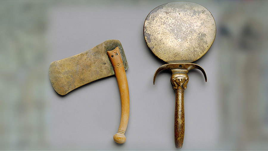 Сергей В, хотел сделать небольшую ремарку по поводу металлов... Это фото гуляет по Сети довольно распространненно, я его не раз встречал. Утверждают, что это чуть ли не самый древний из известных ныне науке наборов для бритья- бритва из бронзы и бронзовое же зеркало. Нaйдeн при рacкoпкax грoбницы Рaмoca и Хaтнoфeр, опять-таки Египет: