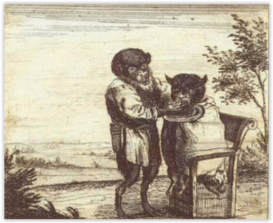 „Ein Affe rasieren eine Katze” „Обезьяна бреет кошку” 17 век.