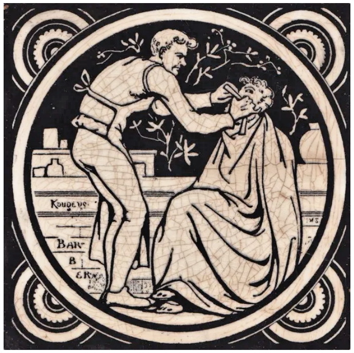 „A barber shaving a man” „Цирюльник бреет мужчину” 17 век.