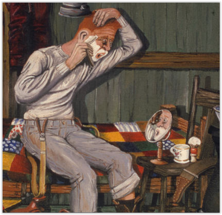 Опасная бритва в искусстве (картины, рисунки, фото, тату)Les Ray, Лес Рэй - современный американский художник-самоучка. Он живет в городе Се́йлем, штат Орегон. Ему 81 год и каждую субботу и воскресенье проводит экскурсию в своем студию. В своих картинах Лес стремится отдать дань уважения скромным, трудолюбивым мужчинам и женщинам.