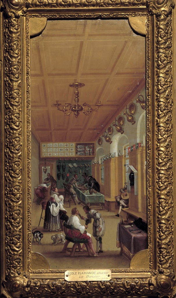 Фламандская школа, начало 17 века (на табличке внизу написано). Франция, город Дижон, Музей изящных искусств. „Le barbier” „Цирюльник” Взглянем поближе: С 2013 г. с кайфом бреюсь опасной бритвой пять раз в неделю, в три прохода.