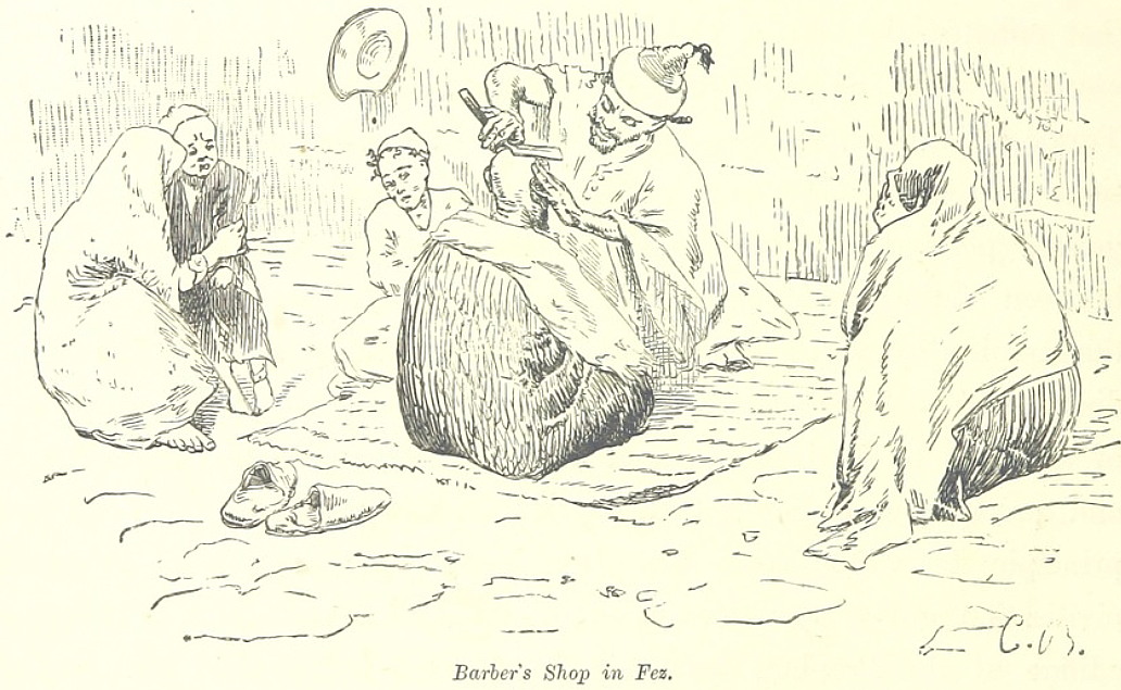 Вот иллюстрации из этой книги. Художник неизвестный. Barber's Shop in Fez” „Цирюльня в городе Фес” „Barber's Shop” „Цирюльня” С 2013 г. с кайфом бреюсь опасной бритвой пять раз в неделю, в три прохода.