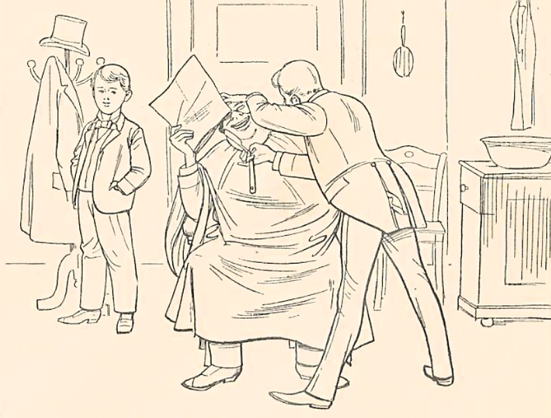 „Mr. Meyer in the barber shop” „Мистер Мейер в цирюльне”