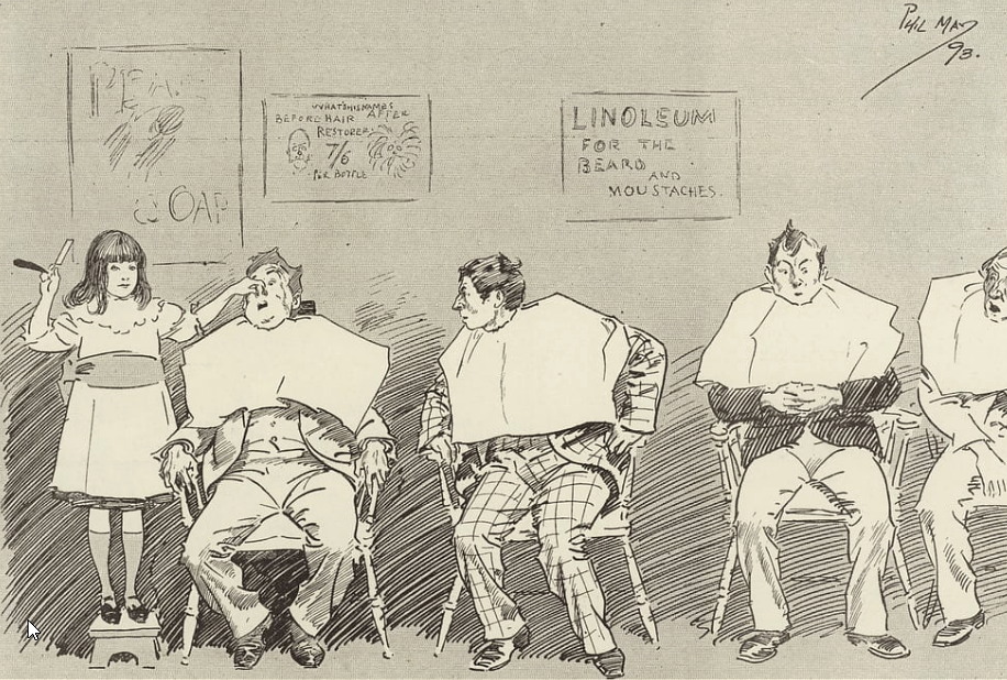 Опасная бритва в искусстве (картины, рисунки, фото, тату)Philip William May (1864-1903) Филип Уильям Мэй был английским карикатуристом. Он сыграл важную роль в отходе от викторианских стилей иллюстрации к созданию современной юмористической карикатуры.