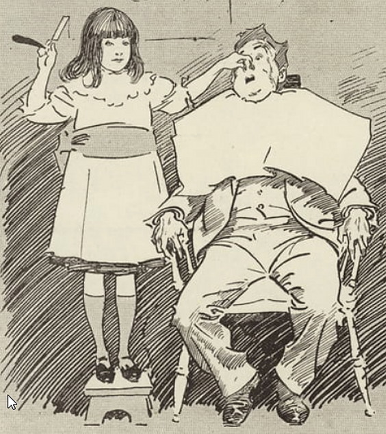 „The Baby Barber” „Малышка-цирюльник” 1898 г. Взглянем поближе: С 2013 г. с кайфом бреюсь опасной бритвой пять раз в неделю, в три прохода.