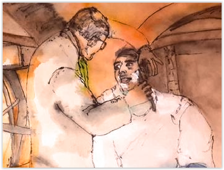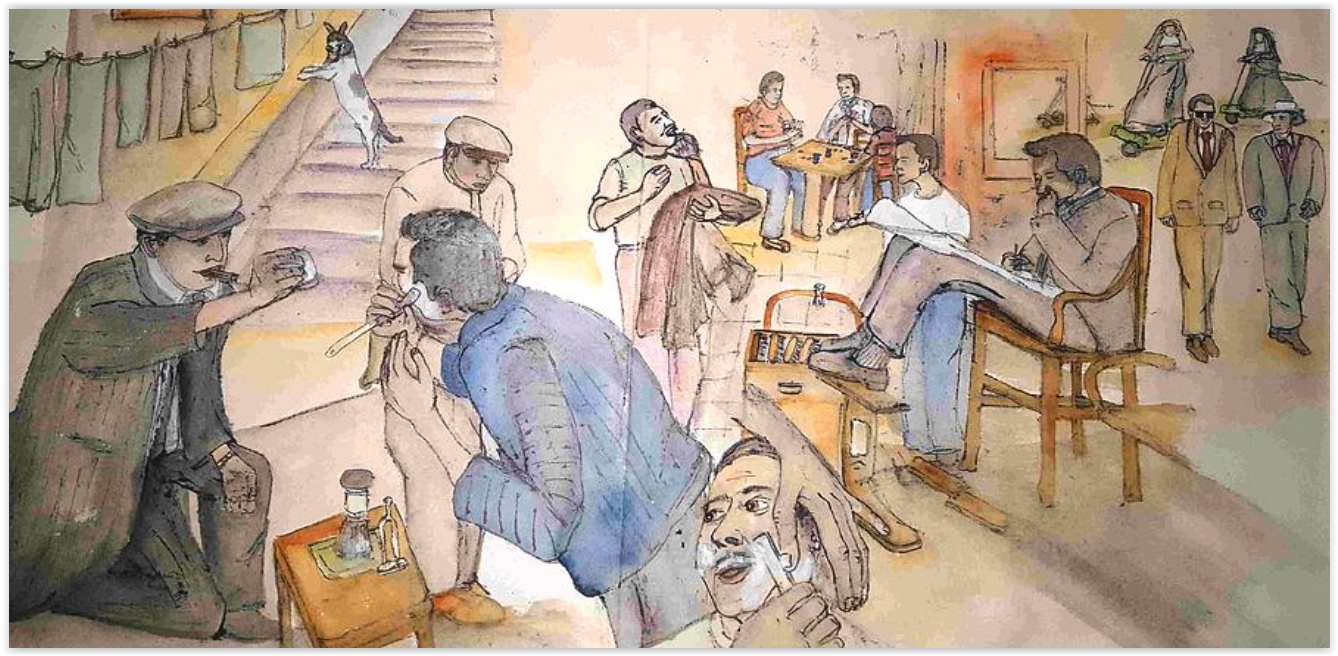 „Ottawa's Barber Shop” „Барбершоп в Отаве (Канада)” 1946 г. Клиент говорит: „Don't cut it too short - Не режь слишком коротко”, (как будто это стрижка). С 2013 г. с кайфом бреюсь опасной бритвой пять раз в неделю, в три прохода.