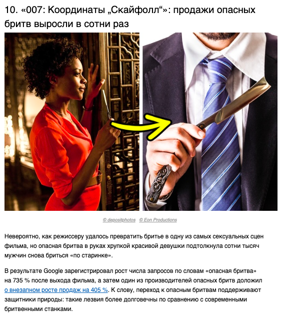 Фильмы с участием опасной бритвыФильм "007: Координаты "Скайфолл" - уже упоминался на стр.27.
