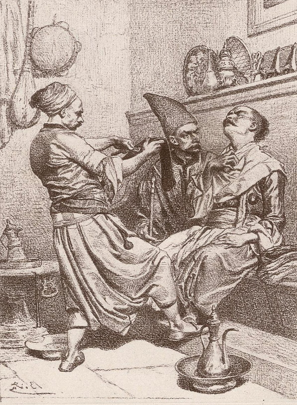 „Turkish barber” „Турецкий цирюльник” ок. 1876 г. И сново способ крепления подвесного ремня - на поясе!: