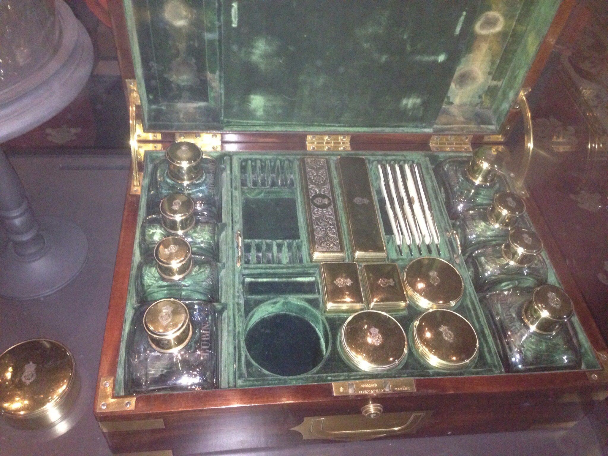На серебряных баночках из бритвенного прибора выгравированы инициалы владельца.
