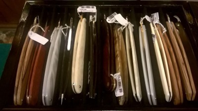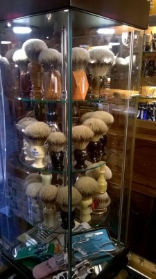 Впечатлений море, но не от бритв. Бритв совсем немного было. Престарелая дама ростом с "мнеподмышку" заявила, что найти новую филармонику нереально потому что их не выпускают более 50(!) лет. И предложила мне на выбор десятка три бритв. Из них около половины DOVO, штуки четыре Wacker, парочка ThiersIssard и три каких то кастомных с мозгососущим дизайном. Цены достаточно квадратные, самая дешевая дово 5\8 стоит 98 евро. К слову в цвиллингвском магазине в Дюссельдорфе я ее купил за 65))). Вакеры 210-460 евро, тиерсы - 340-410, кастомы даже спрашивать не стал, не люблю дизайн отличный от классического. Так же в магазе представлен огромный выбор помазком и косметики. И самое главное, что меня впечатлило - выбор ножей просто огромен. И камней. Была даже накаяма бритвенного размера, но смутила цена в 4 сотни евро. В общем как то так. Вот фото: