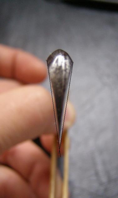 Видно, что реальный клин не представляет собой равнобедренный треугольник, это и понятно. Назвать эти бритвы, бритвами, имеющими вогнутость так же нельзя. Клины скорее "впуклые", чем выпуклые
